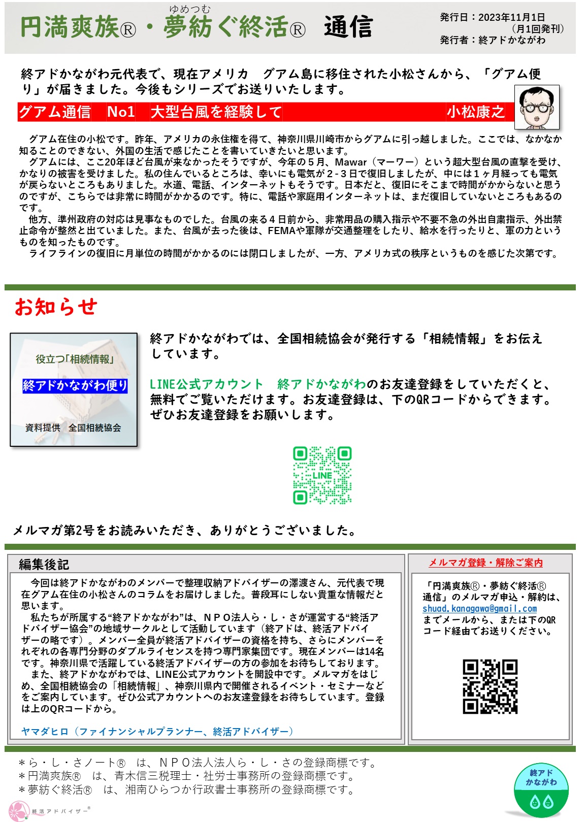 円満爽族Ⓡ・夢紡ぐ終活Ⓡ通信 2号(2023年11月1日号)